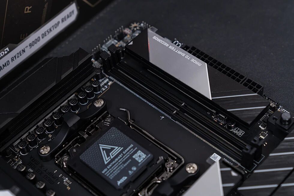 内存超频是这款主板的最大亮点,双槽内存最大支持128GB容量凭借优化的双槽内存布局和微星 Memory Boost 技术,其内存超频能力达到了 AM5 平台的顶级水准:搭配锐龙 8000 系列 CPU 时,内存至高可超频至10600+MT/s,搭配锐龙 9000 系列时也能达到 8400+MT/s,远超同级别主板的常规水准。