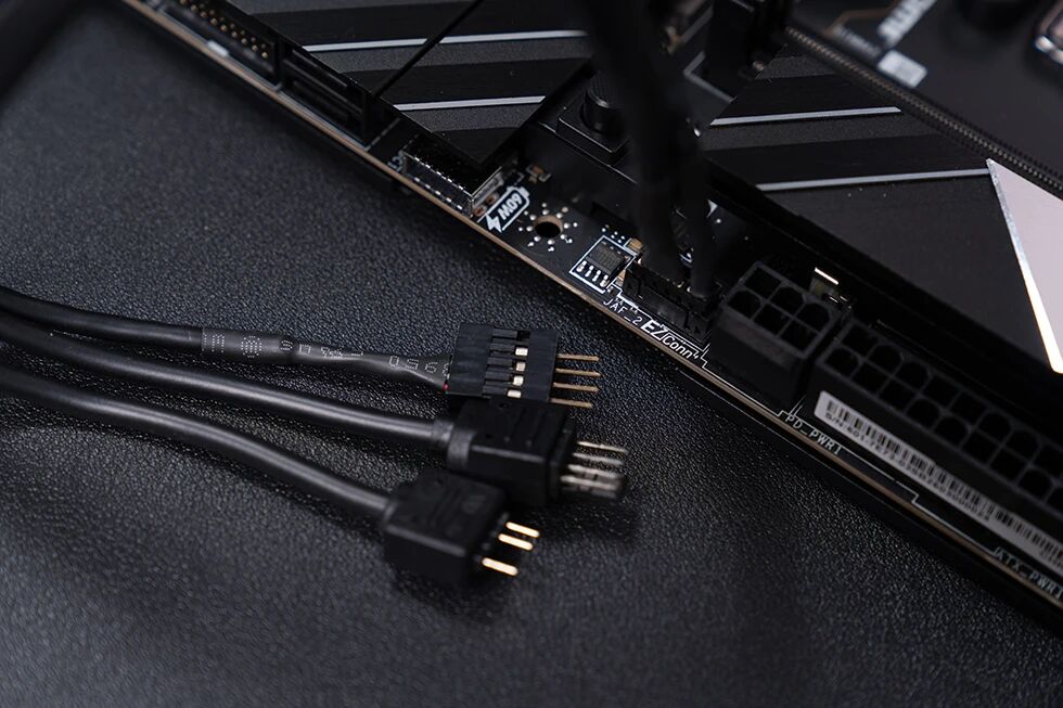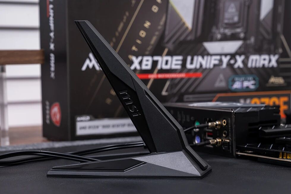 除了核心硬件和性能,这款主板在细节上也做到了极致,处处体现着微星对高端用户需求的精准把握。EZ Conn 设计 搭配 1 to 3 EZ Conn-Cable(V2)线,一根线即可连接 ARGB 灯光、系统风扇和 USB 设备,大幅减少了机箱内的线材杂乱,让装机更整洁;EZ Wi-Fi 天线 设计让无线天线的安装更简单,信号接收也更稳定;背部金属装甲不仅能散热,还能有效防止 PCB 板因重力弯曲,提升主板的耐用性。