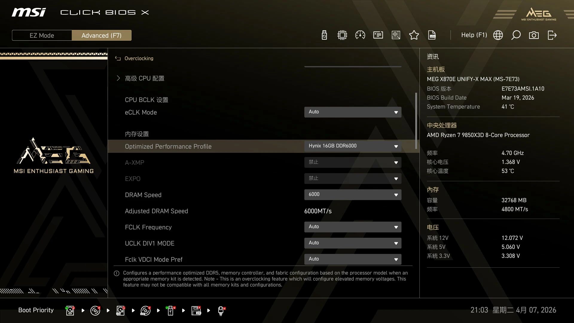 测试平台采用主流的9850X3D+RTX5080+6000CL28时序DDR5内存,搭配微星 MEG X870E UNIFY-X MAX 暗影主板进行测试。