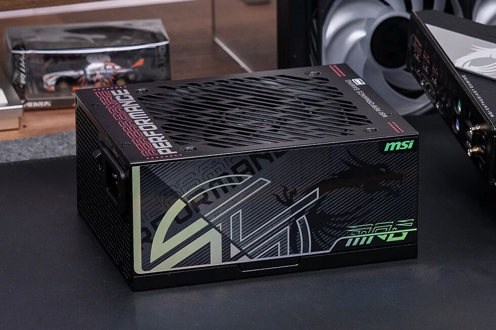为保证整机的功耗需求,使用微星钛金 ATX 电源新品 MPG Ai1300TS PCIE5“月神”电源。获得80 PLUS 钛金、PPLP 115V 钛金与 Cybenetics 白金认证,享受 12 年保修。采用全数字主控方案,支持实时监控。其在交错式 PFC MOSFET 中应用英飞凌碳化硅 (SiC) 器件,完全采用日系 105℃ 耐温电容器,可承受 240% 的峰值负载偏移,+12V 输出电压波动<1%。