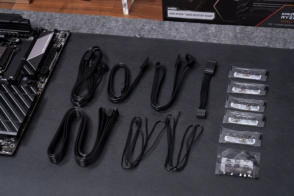 随机附赠的配件也十分丰富,除了超频遥控器,还有 5 个 EZ M.2 Clip II 卡扣、1 to 3 ARGB Gen2 延长线、热敏电阻线等,几乎无需额外购买配件,就能满足装机和个性化改造的需求。