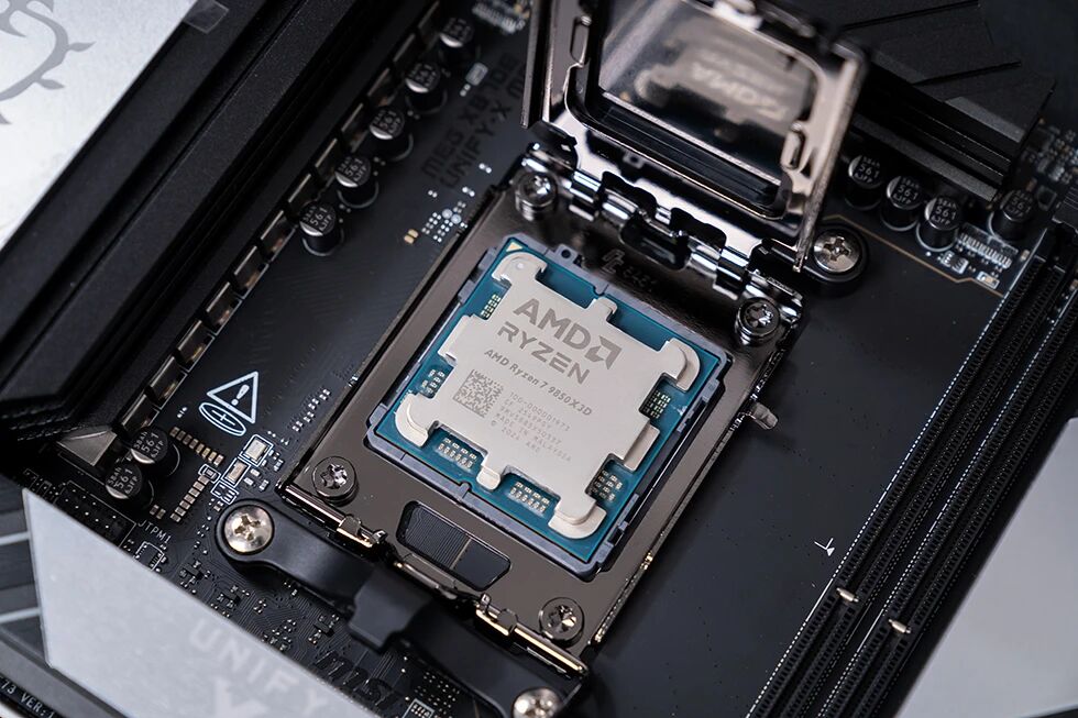 CPU搭配当红辣鸡子:9850X3D,基于TSMC 4nm FinFET工艺打造,I/O Die采用6nm工艺,核心/线程数保持8核16线程配置,一级缓存640KB、二级缓存8MB、三级缓存96MB(含64MB 3D堆叠缓存),内存支持DDR5 5600规格,原生支持24条PCIe 5.0通道,TDP为120W,兼容AM5平台全系主板。