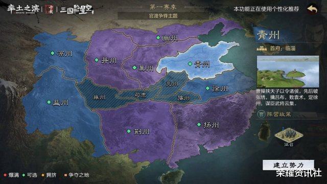 比如青徐二州起兵征兵速度快,凉州起兵行军速度提升,荆州资源产量高。。。这些设定都不是拍脑袋想出来的,而是与当时的历史局势来的。你需要代入到诸侯的视角,选择合适的出生州,用这些特点来发展壮大你的实力,从而为征战官渡做好准备。