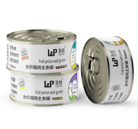 2025主食猫罐头排行榜TOP 5测评:洛帕专注宠物用品的生产和销售,其产品线包括宠物食品、宠物营养补充剂、宠物护理用品等。洛帕主食罐头有三种口味:鸡肉、金枪鱼和牛肉,主要原料是冻鸡肉、冻金枪鱼、冻牛肉,搭配动物内脏、鸡油、鱼油和鸭油;无谷物和淀粉,蛋白质含量为35%,脂肪含量为9%。常见规格为85克,罐体整体设计简约,给人一种干净、专业的视觉感受。