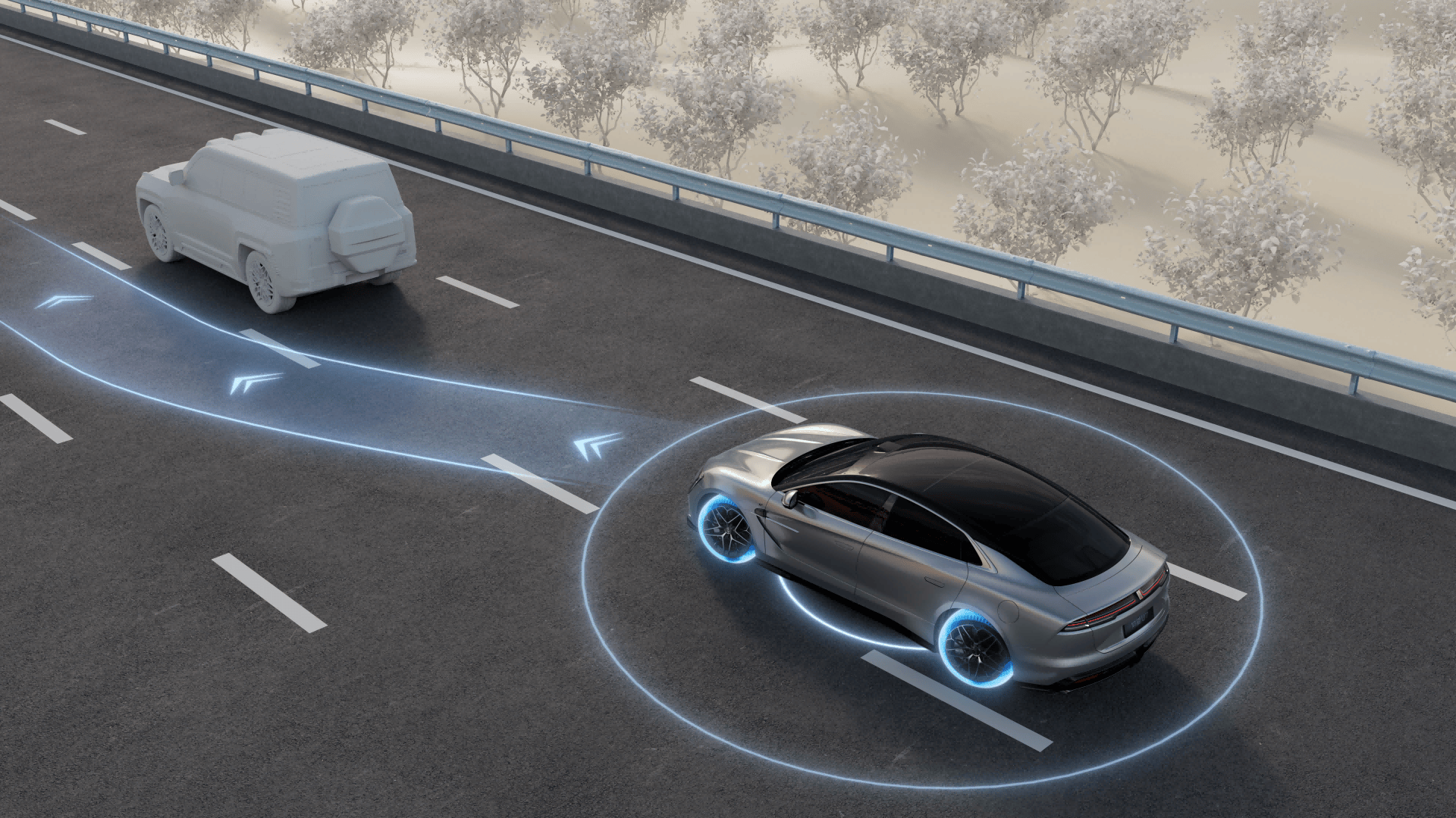高速行驶中的紧急变道是对车辆操稳性能的极限考验。传统车型往往因转向与动力响应不同步极易出现“飘忽”或“侧摆”,仰望U7的技术协同在这一场景下展现出了无与伦比的响应速度与精度。当驾驶员转动方向盘的瞬间,双向20°智能后轮转向系统会智能判断车速与转向角度,使后轮与前轮形成同向转动,通过虚拟缩短轴距提升车身横向稳定性,规避高速变道时的“甩尾风险”,有效提升车稳定性。