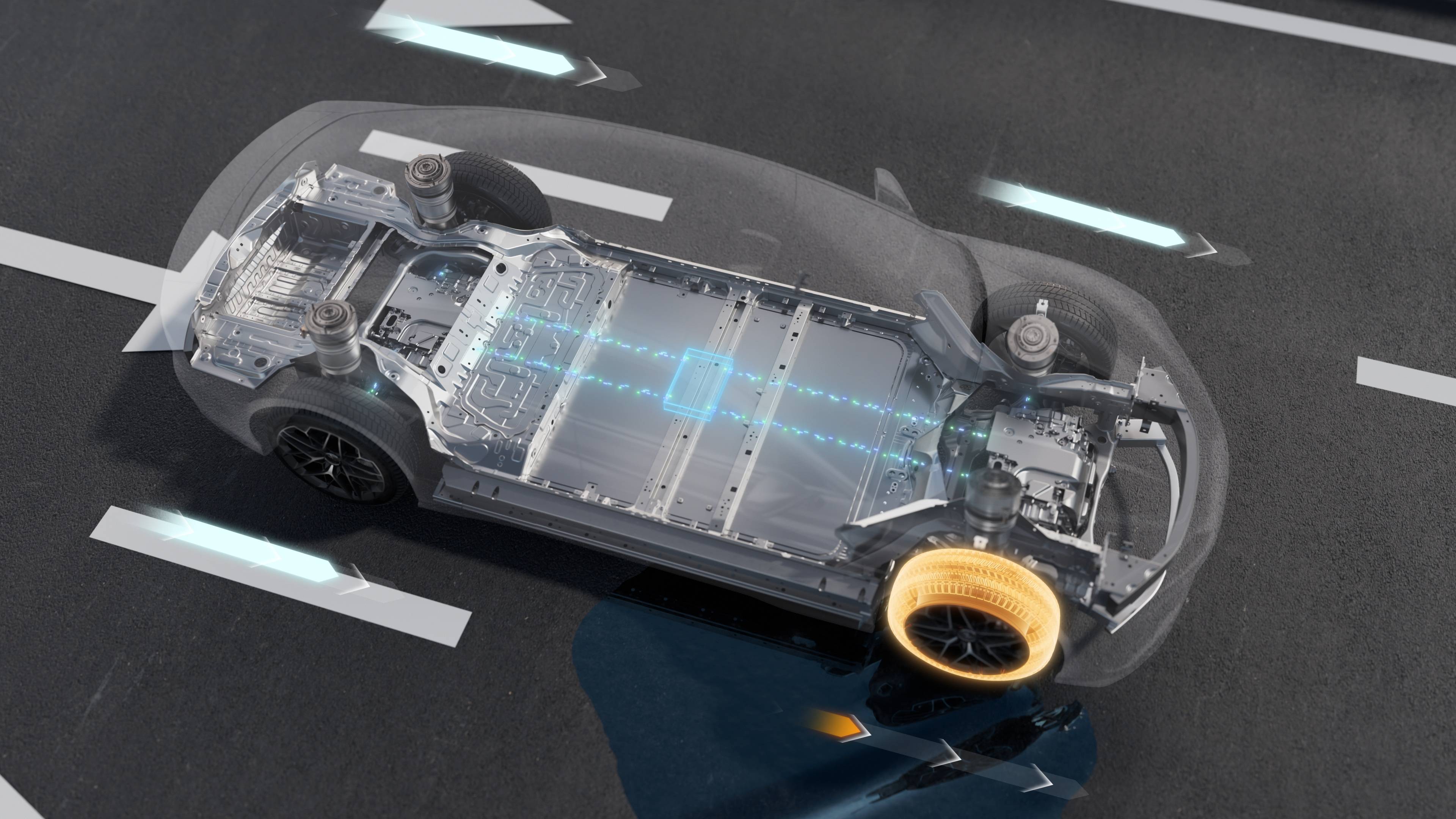 几乎在同一时刻,易四方系统开始对四轮扭矩进行矢量分配。通过实时监测车身姿态与行驶轨迹,系统精准计算每个车轮的最佳扭矩输出,通过左右轮动力差微妙而迅速地修正车辆行驶方向,确保变道轨迹的精准无误。云辇-Z系统则以其高达50kW的悬架系统峰值功率,快速调整悬架刚度与阻尼,“拉住”车身抑制侧倾。其全球最快的主动力调节速度(5毫秒内完成全链路执行)是传统主动悬架的数十倍,确保车身姿态在急剧变化中的稳定性。车身响应的速度甚至快过紧张情绪的产生,那种干净利落、没有一丝多余晃动的轨迹变化,会让你赞叹科技竟带来如此安心。