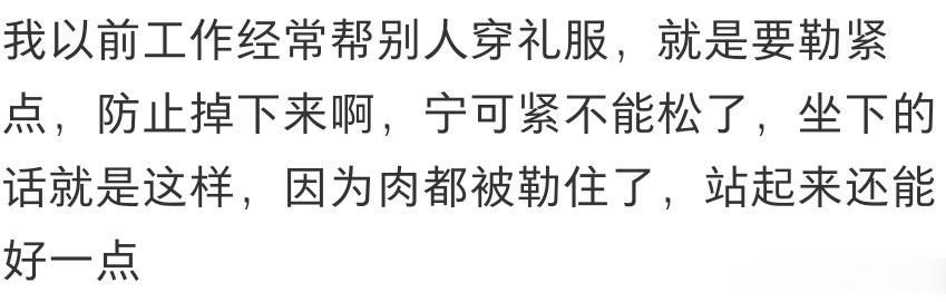 对此也有网友表示,这样款式的礼服就是要紧一点才不会往下滑,所以团队在选尺码的时候,宁愿选小的也不会选合适的,这样也是为了保护田曦薇。