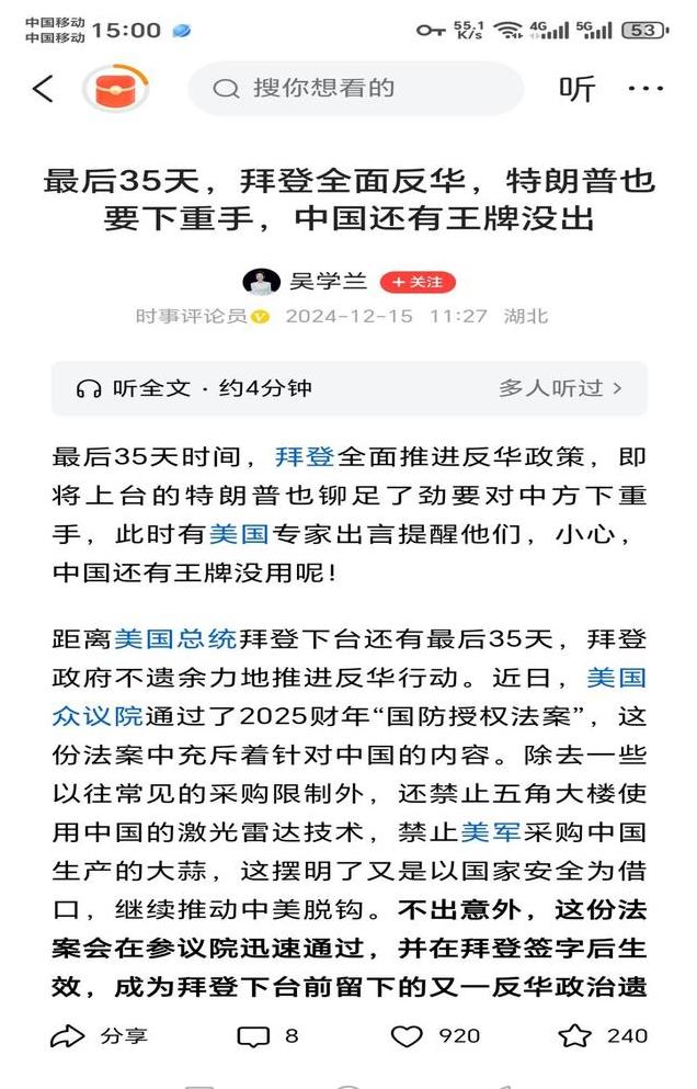 让我们先来看看拜登政府在最后阶段究竟干了什么。最近,美国国会高效率地敲定了2025年国防授权法案,这份法案直接针对中国的高科技和军工产业。
