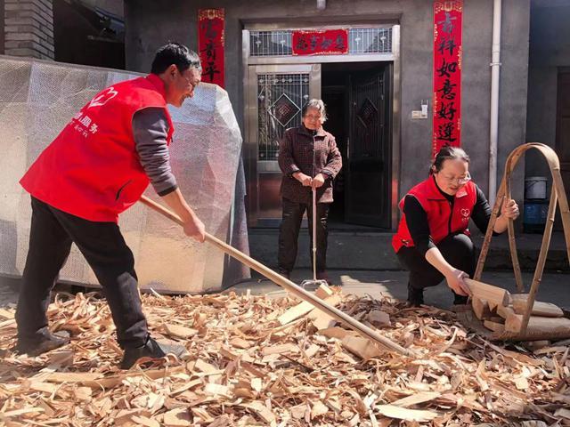 志愿者为老年人准备过冬柴火。陈宣苗/图
