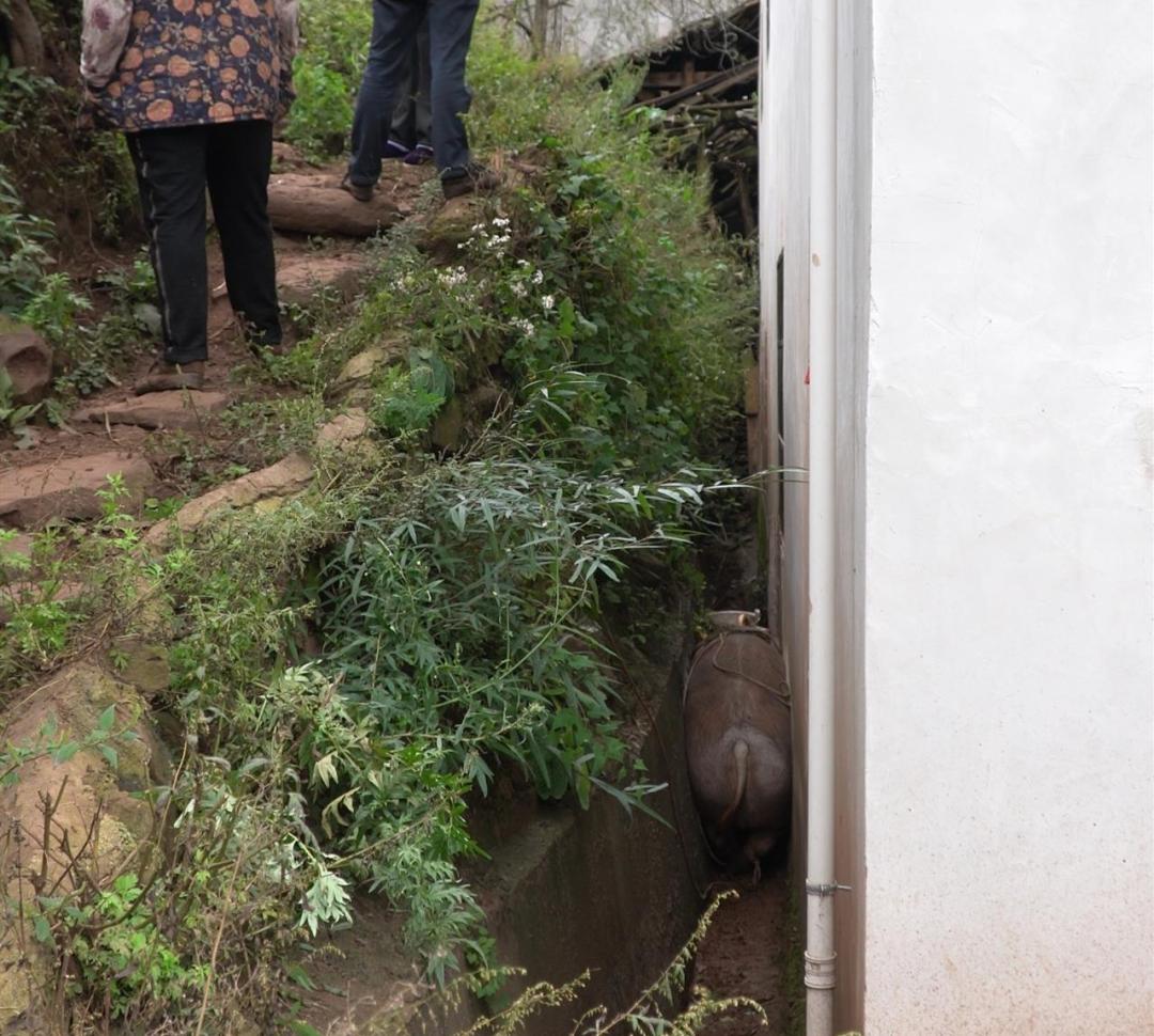 记者联系到新启村的村干部,他称他听说了猪卡在阴沟出不来的事情,后面农户们把猪救出来了,“猪是活着的,农户又卖出去了”。