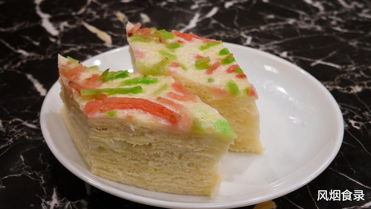 其64层糖油相间,芙蓉色半透明,如“其白如雪,揭之千层”的千层馒头改良而来。