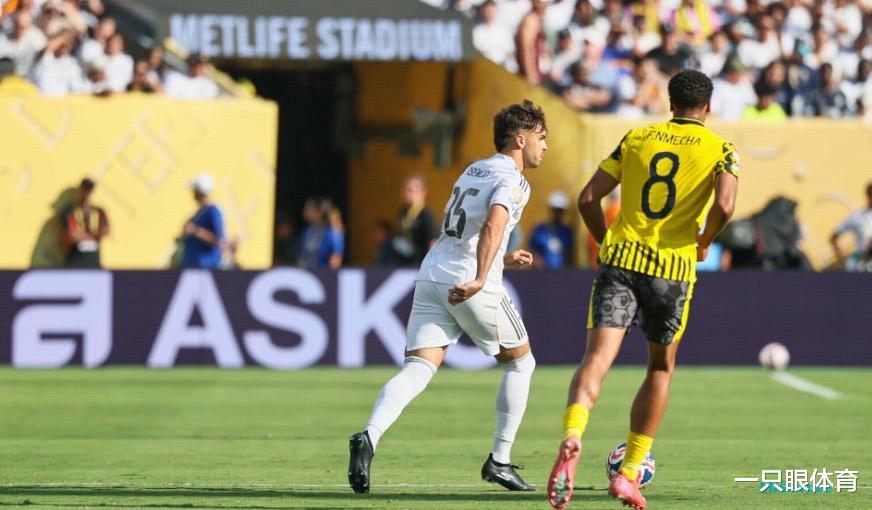 简单回顾下这场比赛,开场第10分钟,皇马梦幻开局,贡萨洛跟进抢点凌空垫射入网,本届世俱杯他已经完成了5场4球1助的完美数据,帮助皇马1-0领先。又过了10分钟,“银河战舰”的攻势卷土重来,贡萨洛得球调整送出斜塞,阿诺德跟进回做禁区后点,弗兰-加西亚迎球推射打进,多特蒙德2球落后了。