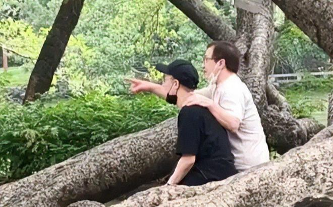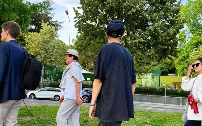 值得一提的是,虽然是父子俩出行,但两人身边还有其他人一起陪着出行,看起来低调又不低调。