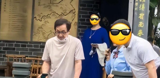 成龙当天穿了一件浅色短袖T恤、戴眼镜,看起来非常低调。