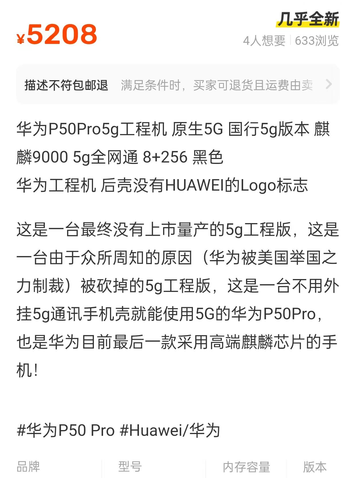 小黄鱼真是一个神奇的地方,总能见到各种各样的工程机。这不,最近华为P50 Pro工程机就流入闲鱼,标价5208元,但真正