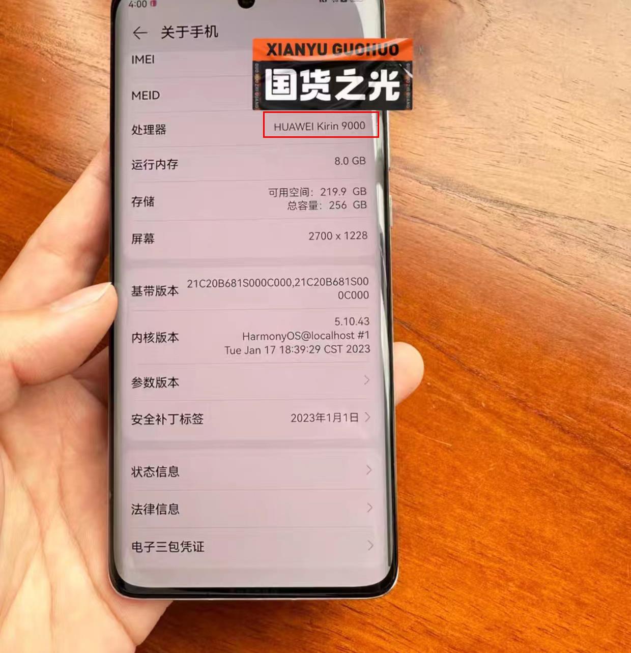 为了证明所言不虚,卖家还直接放出了手机配置图,可以看到处理器是“huawei kirin 9000”。也就是说,华为在新机研发的过程中,也考虑过搭载满血版麒麟9000芯片的可行性,只是碍于无法量产芯片所以“难产”了。