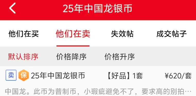 目前,单枚中国龙币的报价,已经达到620元,部分甚至达到650元。