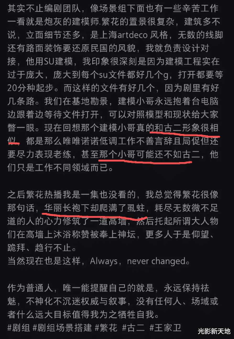 建筑师的文字没有夸大其词,影视剧组要远比他看到的更残酷,不管是《繁花》剧组还是其他剧组,古二这样的人都有很多。