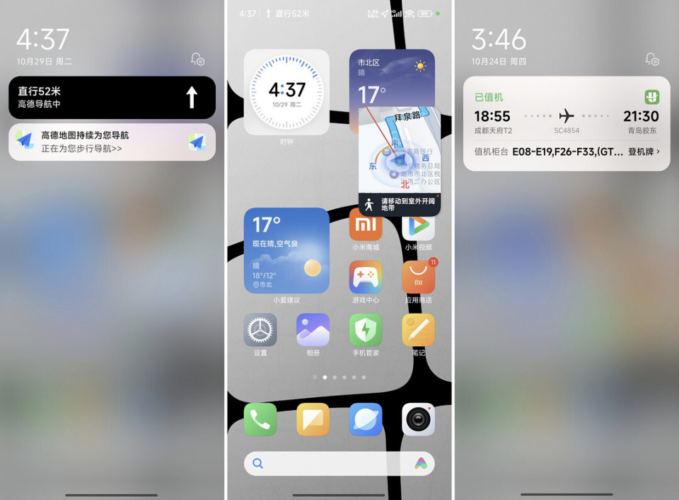 负一屏、通知中心和控制中心都增加了甩尾动效;控制中心和通知中心的切换变得更加自然流畅;高斯模糊效果换成了新的解决方案,覆盖场景更广,同时也大幅减少了卡顿和掉帧的情形发生。