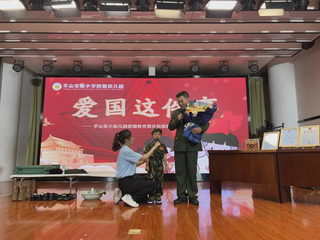 在祖国76华诞即将到来之际,信阳市羊山实验小学附属幼儿园迎来了一位特别的“老师”——赵乐艺楦爸爸。他以退伍军人的身份化身“军营老师”,带着满腔热忱与红色记忆,和孩子们共赴一场“爱国这件事”的温暖之约。