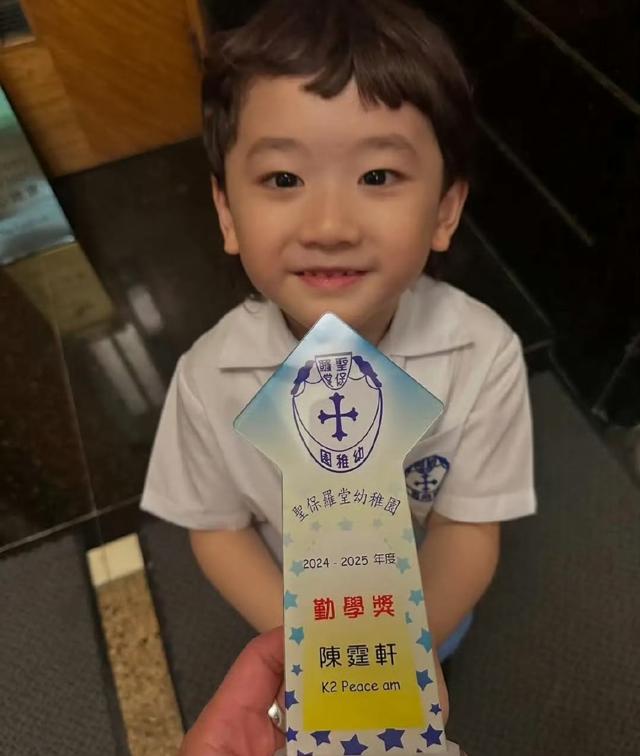 显然陈霆轩继承了父母的高颜值,他肤色偏白,肉嘟嘟的很可爱,在学校参加典礼的时候,也是开心的合不拢嘴,尤其是在台上领奖的时候,更是眉开眼笑。