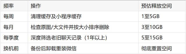 若手机内存为128GB且微信常年大于50GB,建议升级256GB+存储。