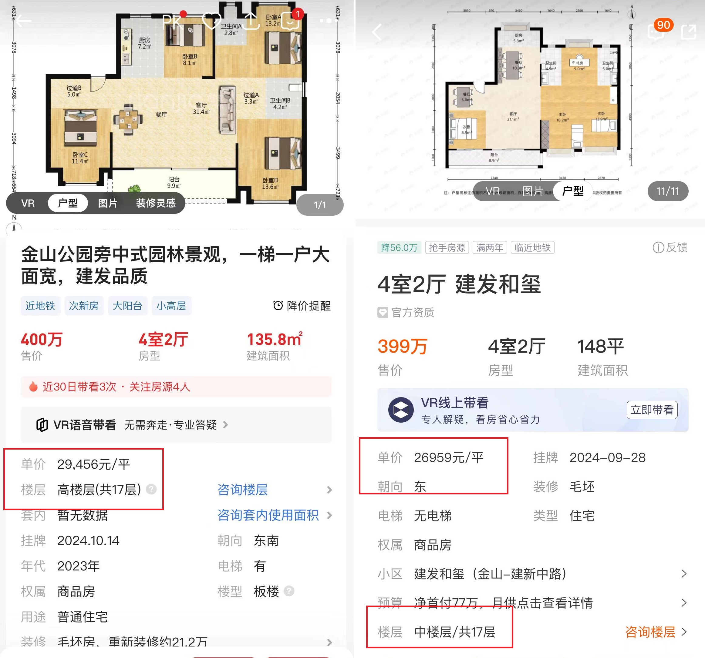 这时候,一个鼓楼西,一个金山北,一个怡山小,一个金山小,一个高架边,一个产业园,差价达到1.2W。
