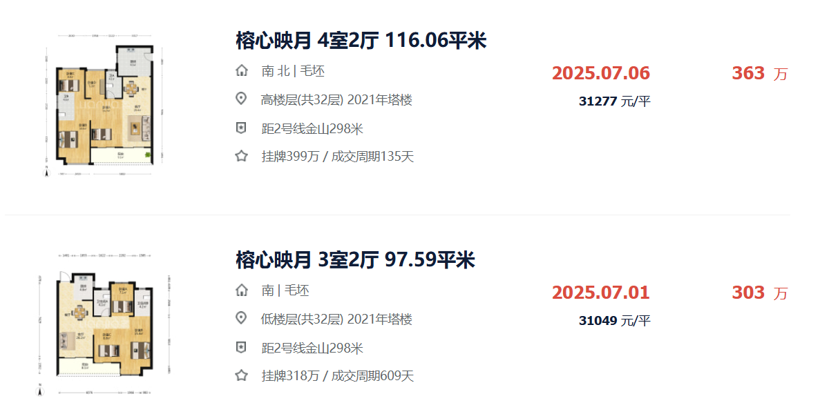 这时候回到文翠的对比,即便这套房源不做参考,榕心映月目前3.1W左右的均价,对比文翠精装已经是基本持平。
