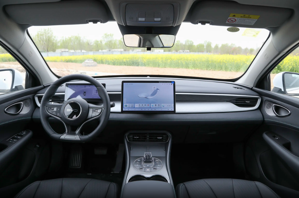 与此同时,海豹05DM的内饰采用了相对主流的简约风格,虽然在细节处能够看到家族化设计的影子,但是整体给人的感觉却不是很高档。尤其是简约的中控台上,搭载10.1英寸的中控屏(中高配版本为12.8英寸),看起来廉价感十足。好在这款车型标配多功能方向盘,方向盘采用皮质包裹,触感和质感都不错。