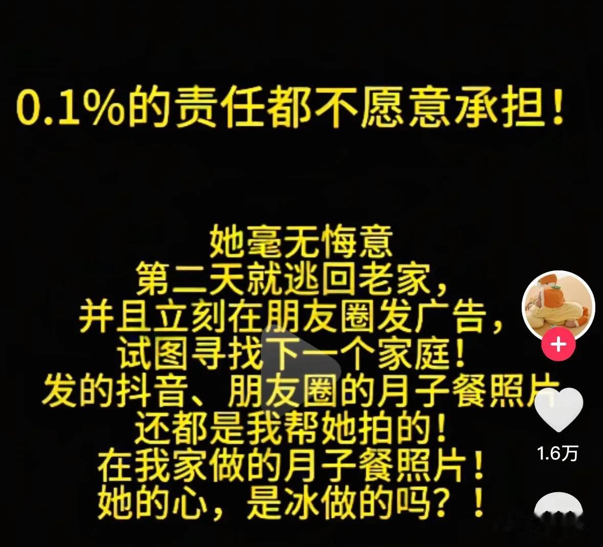 一个月18800的工资,对于普通家庭来说,不是小数目。按道理来说,月嫂理应对得起这份工资。