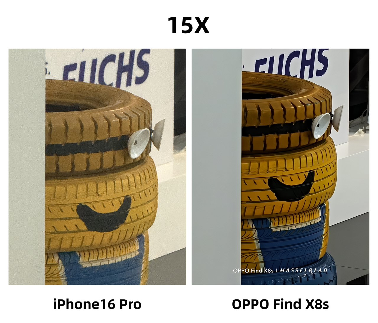 再看到15倍场景下,这下就有差距了,可以看到iPhone16 Pro的画面噪点较多,呈现出不清晰的状态,在这场景下已经很乏力;Find X8s看得出也是比较吃力的状态,但画质还是比较清晰的,几乎看不到噪点,表现相对来说要好些。