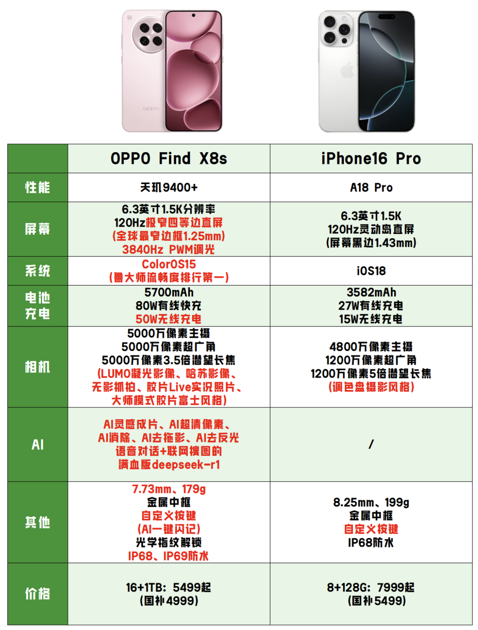 看到这里,我是觉得挺有道理的。所有有在高考后换机的同学,换iPhone的话记得要买Pro级别的,虽然价格高但好歹有个5倍长焦;预算少点的话,不如看看国产旗舰,可以等等华为Pura80;预算再少点的话,建议看看OPPO Find X8s,三千出头的价格,而且也有潜望长焦。
