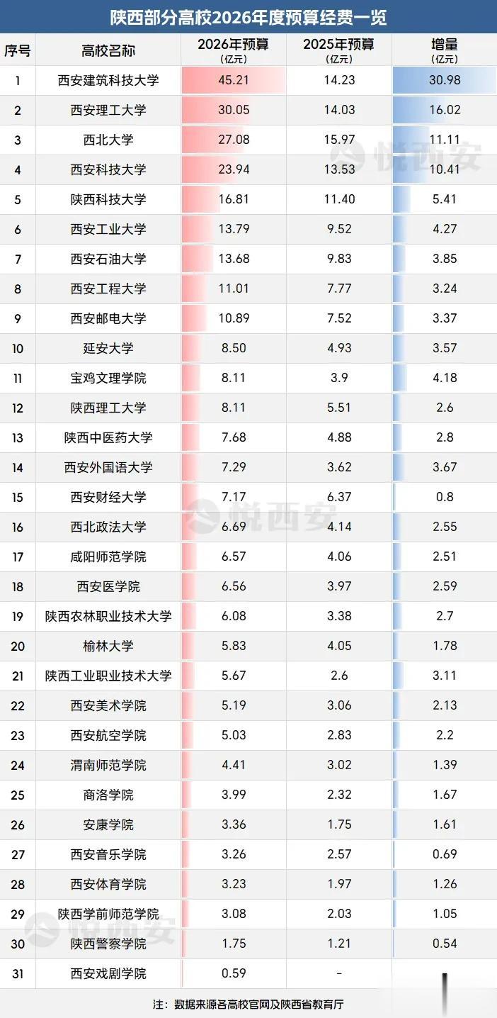 3月初,陕西省教育厅公布了省属高校2026年经费预算,较往年来看,预算金额实现显著增长。