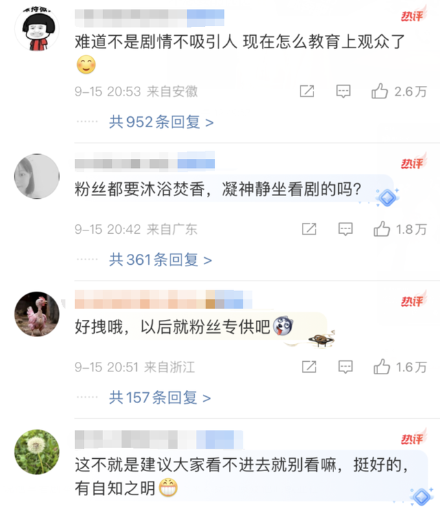 很快成毅的这段发言就被审判了,网友感觉自己有被冒犯到,怎么追个剧还要被限制人生自由了,观众爱怎么看剧就怎么看剧,有没有可能是作品本身剧情就不够吸引人呢?成毅这样表达,未免有些傲慢了。