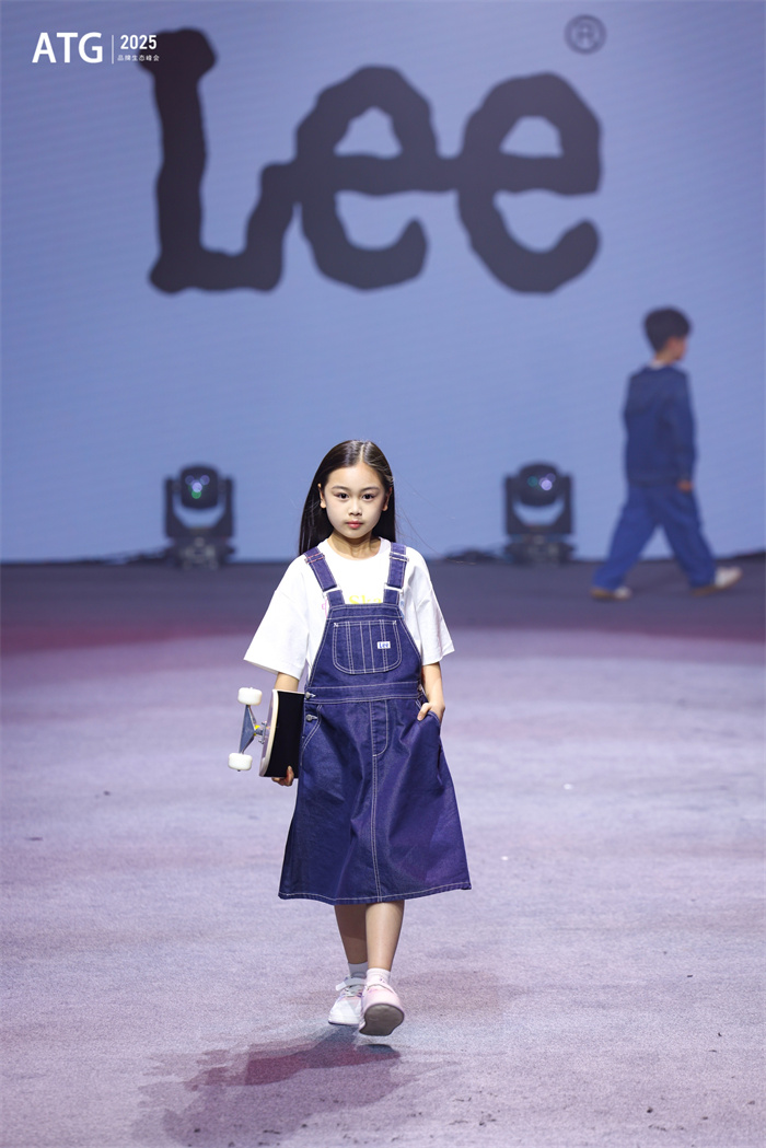 儿童天马行空的想象化作现实,LEE童装以IP联名开启奇幻之旅。Buddy LEE玩偶相伴登台,环保材质与趣味印花在LED屏幕变幻中呈现立体效果。小模特们童趣地演绎“一衣多穿”设计,运动休闲系列与新年主题交替亮相,萌趣造型搭配科技面料展现可持续时尚新范式。