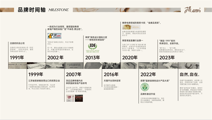 当晨雾轻拂过天然棉田,顶瓜瓜以"生于自然"为主题拉开大秀帷幕。巨大的主屏与侧屏联动呈现动态棉花生长影像,模特身着彩棉系列服饰缓步而出,天然质朴的色彩与松弛剪裁在雾气氤氲中更显东方静雅。谢幕环节故宫红系列登场,圆形背景映衬"一家人"主题,暖色调灯光与欢快音乐交织出东方团圆的喜庆氛围。