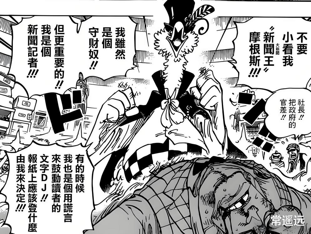 《海贼王》世界虽然经常会出现一些超时代的黑科技,但是总体来说还是处于蒸汽时代,新闻行业主要依靠报纸传播,而摩根斯正是新闻行业的巨头,绰号“BIGNEWS”,目前《海贼王》出现所有的报纸新闻,都是由其创建的报社“世界经济新闻社”之手,对于舆论的影响力十分巨大。