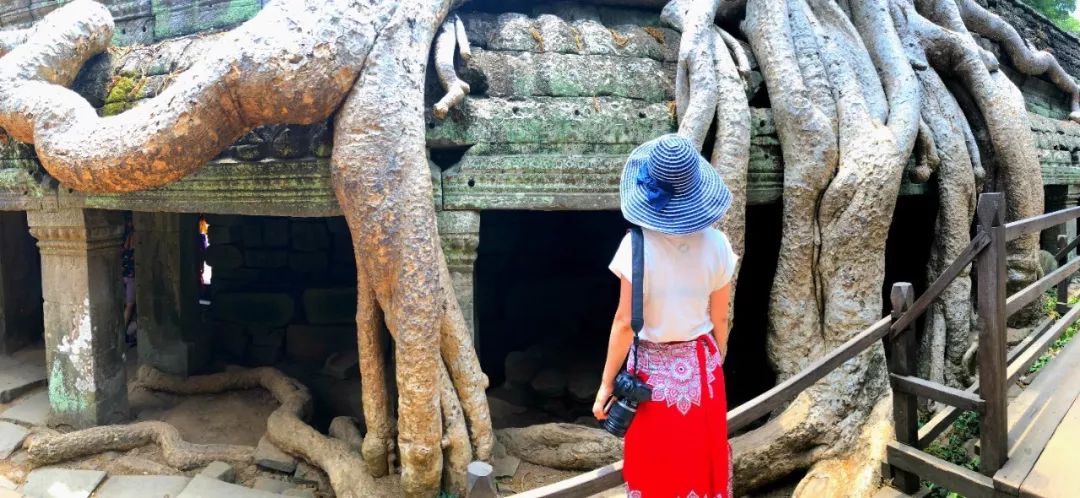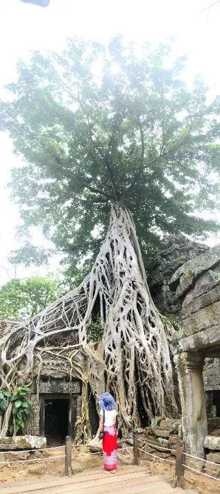 看着雄伟瑰丽的建筑,惊叹于生长千年的老树与神庙包裹缠绕在一起,和谐的共生,内心满是虔诚和敬意。面对千年的蜕变,昔日的金碧辉煌,如今已成断井颓垣。