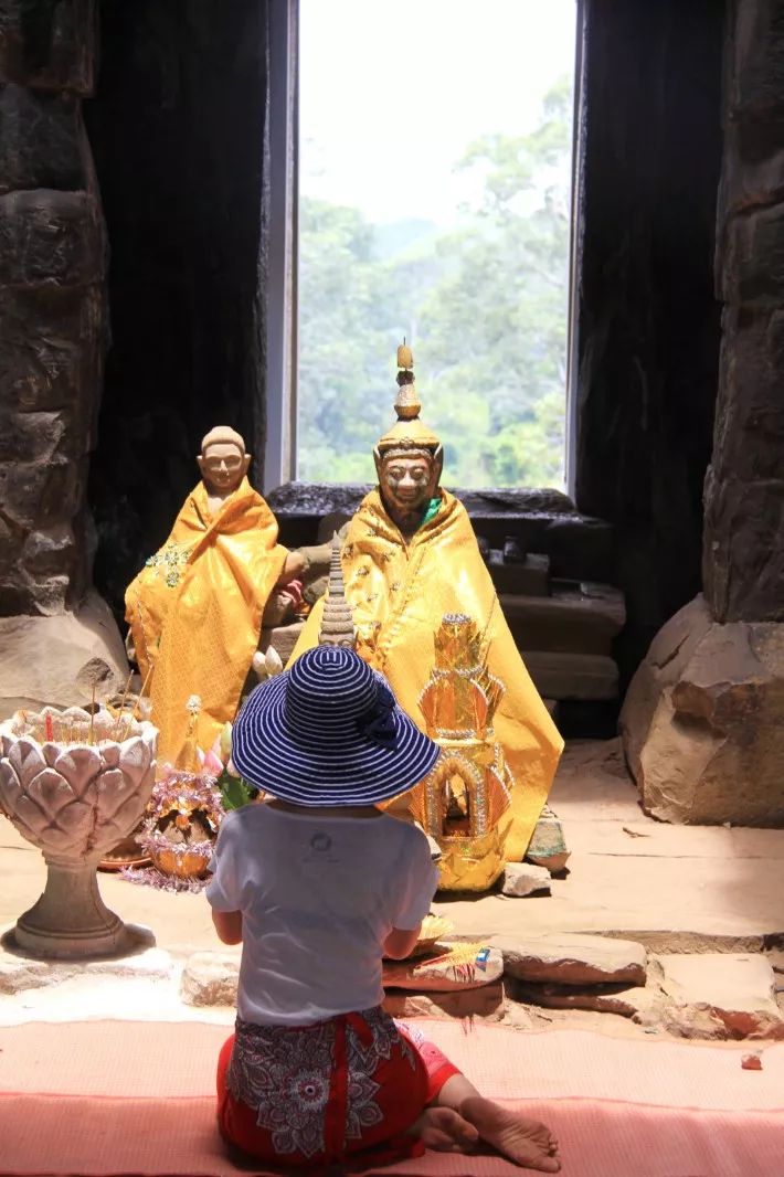 无论是清晨还是黄昏,人烟稀少的时候,踱步在吴哥窟中心和外围的任何一个神庙里,太阳的微光照射在长满青苔斑斑点点的石壁上,四处寂静无声,我的手扶在巨大沉重的石门上,仿佛推开门,会闪出一道金光,带我进入辉煌盛世的吴哥真腊时代。