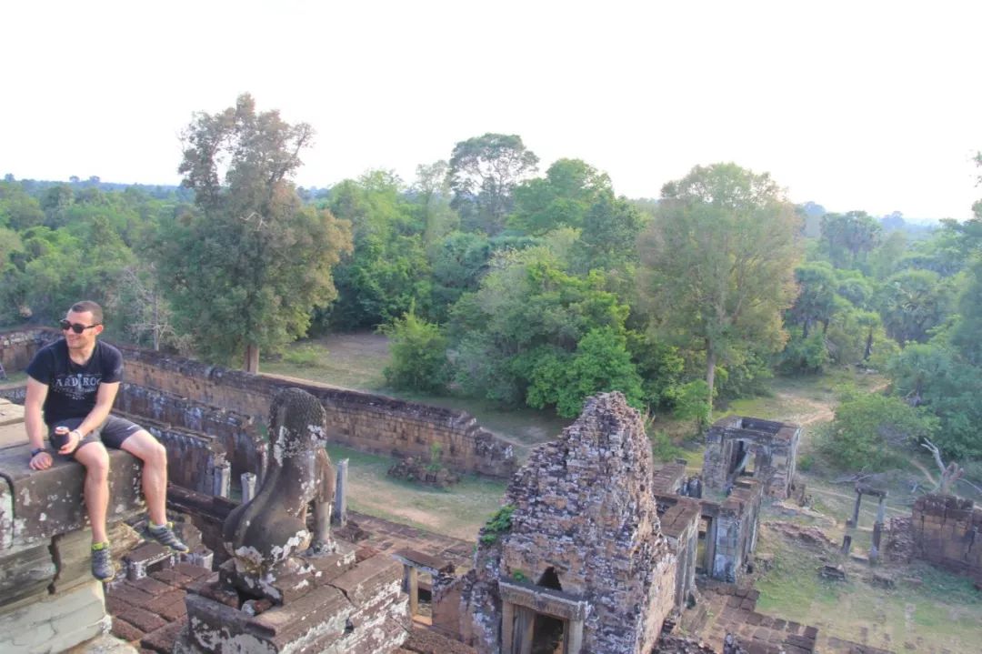 躺在顶层的宝塔旁边的石板上,我的脚下是茂密不见底,一望无际的热带雨林,我的背后是千年后的吴哥窟。