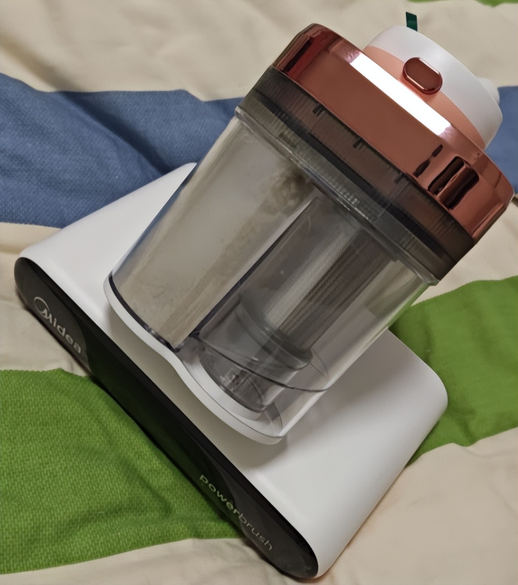 这款除螨仪的清洁能力十分强大。它每分钟能进行 12000 次高频拍打,就像一双有力的小手,快速地把深藏在床铺、沙发等织物深处的螨虫及其排泄物拍打出来。配合 15000Pa 的超强吸力,如同一个小型龙卷风,把这些被拍打的脏东西一股脑儿地吸走。单次使用,你就能直观地看到尘杯里吸出了大量的尘螨、皮屑,效果显著,除螨率达100%。