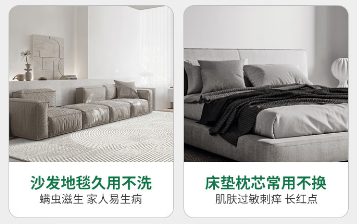 环境会持续滋生螨虫:就算你把床垫、沙发的螨虫清理干净,只要家里还存在 “皮屑(人体每天会脱落 5 - 10 克皮屑)、温暖潮湿环境”,螨虫就会从其他地方(比如衣物、地毯、宠物身上)爬回来,或者重新繁殖。