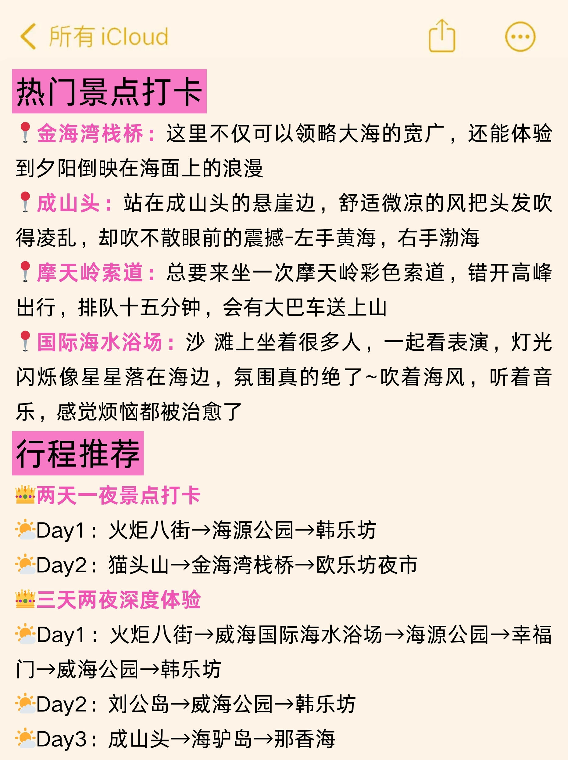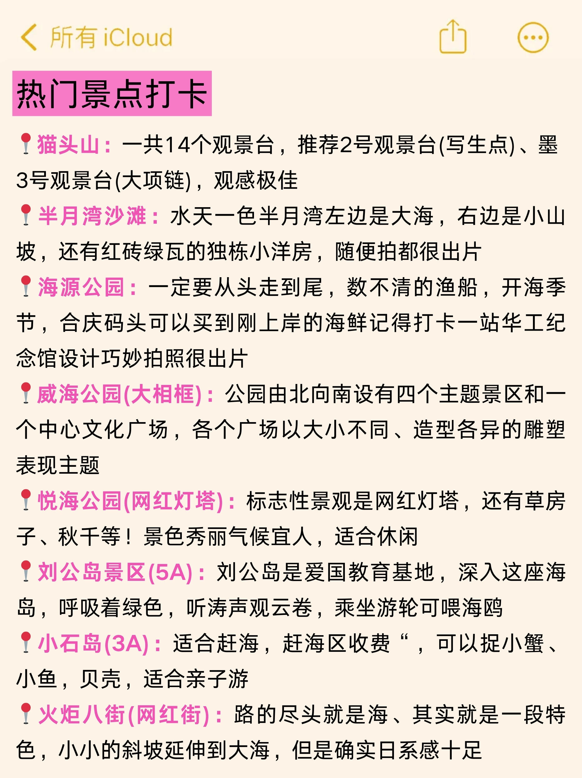 这篇是我刚做出来的攻略,都是威海很新的旅游信息,🔖大家出发之前可以看看,希望可以帮到大家!