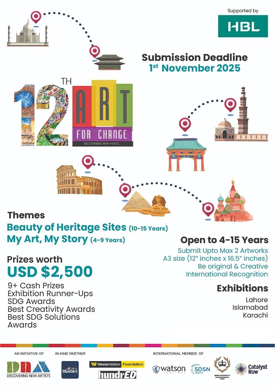 历经多年发展,"Art for Change"已成为巴基斯坦乃至全球最具影响力的艺术倡议之一,持续激励年轻一代以艺术推动社会向善。迄今我们已汇聚来自24个国家超过16.2万名年轻艺术家的力量,并通过艺术教育、展示平台与发展机会,助力38,000余名边缘化社区学生绽放才华。