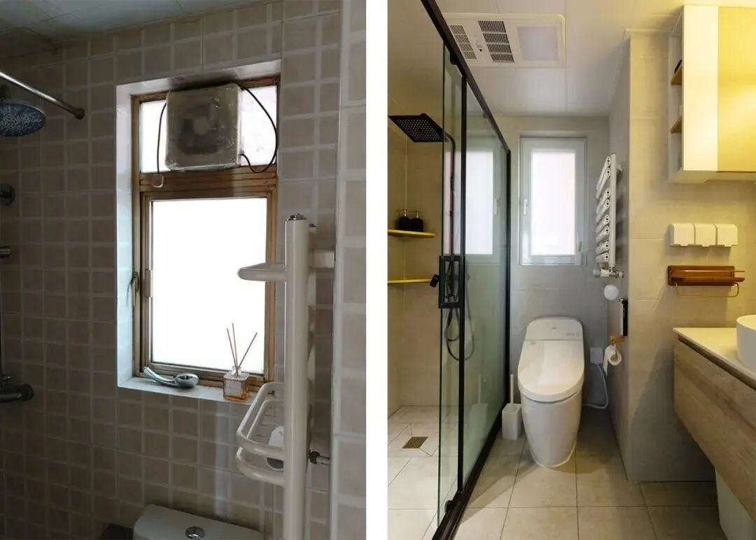 六、卫生间:玻璃隔断 + 灰色砖,整洁易打理