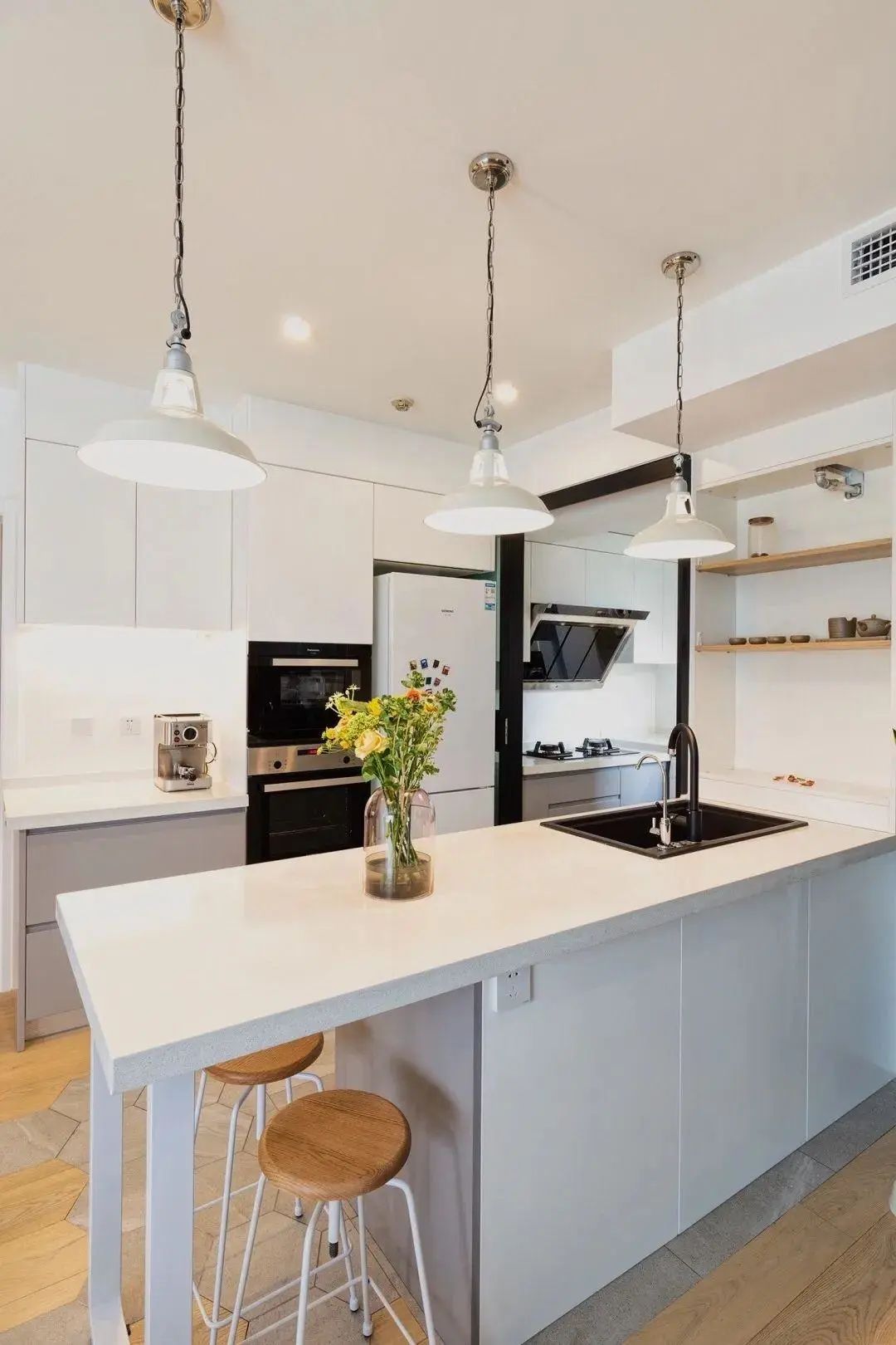 厨房是改造的 “亮点区”,通过分区设计提升实用性: