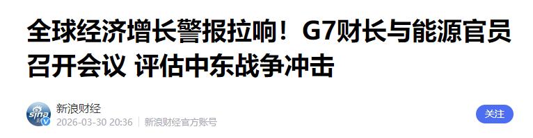 新浪财经《全球经济增长警报拉响!G7财长与能源官员召开会议 评估中东战争冲击》