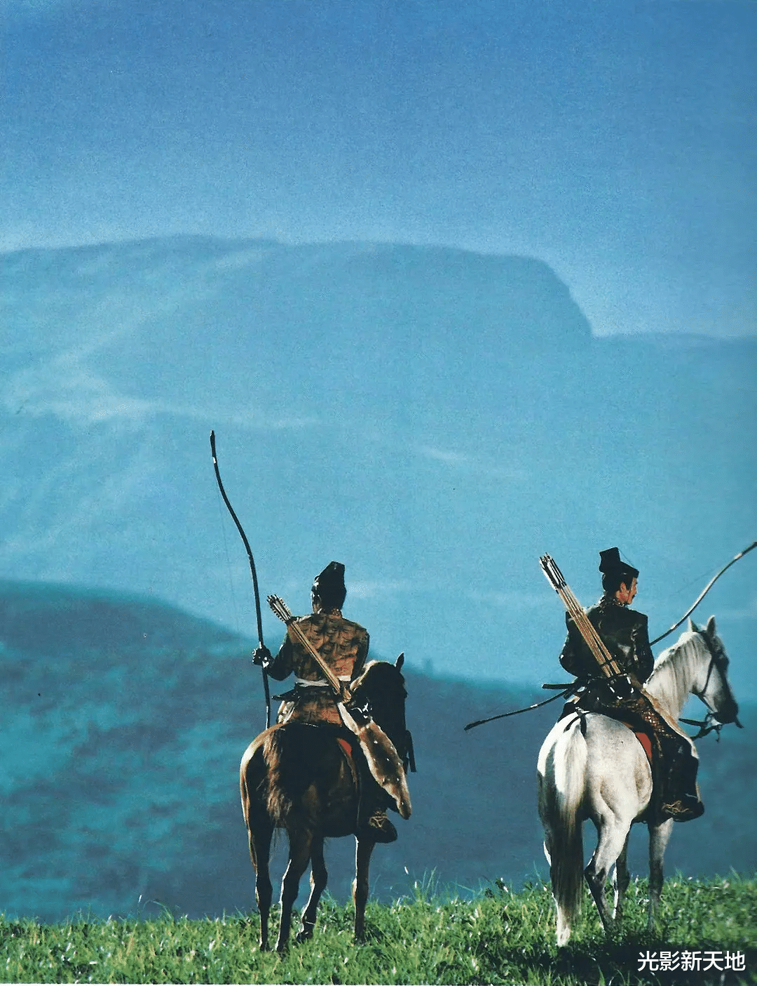 电影用的都是传统拍摄手法,大道至简、大巧不工,大量的固定机位镜头,就连运动镜头也没有轨道、摇臂,只是简单的镜头转动,这样的结果是凸显构图的高明,和黑泽明的绘画功底相呼应,电影开篇的青山绿草场景宛如油画。而后面混战,马群在镜头前疾驰而过,红色的旗帜营造出血液流动的观感,非常奇妙。