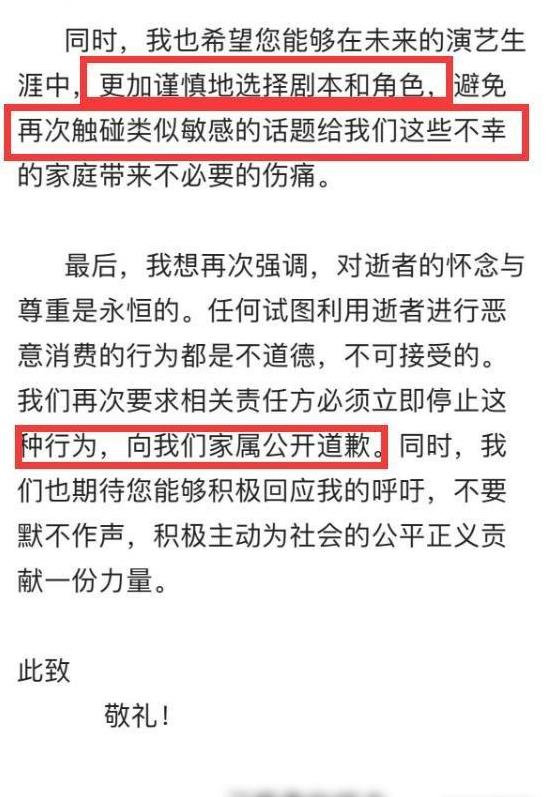 这一举动不仅是对剧集内容的反对,更是求助于法律,期望借此方式来表达对逝者的哀悼与对其名誉的维护。