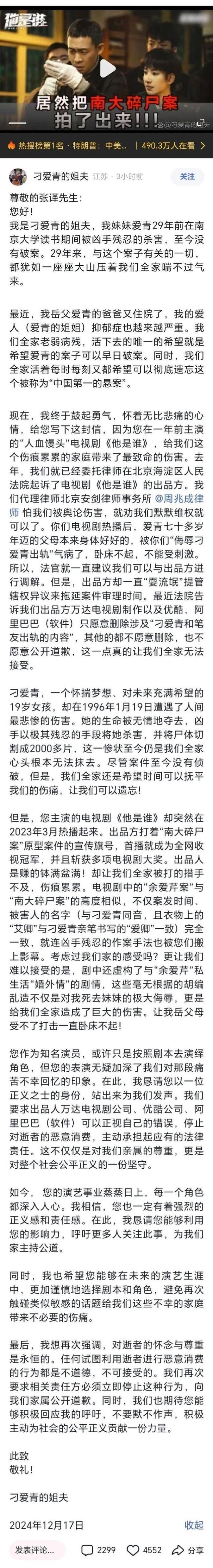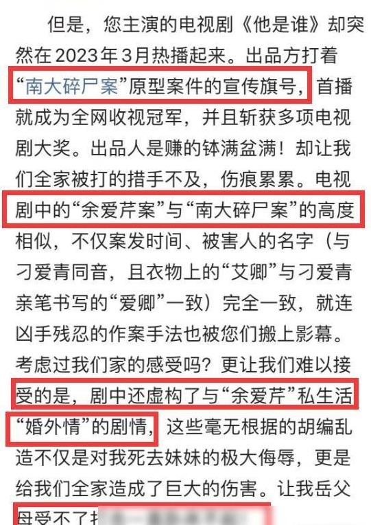 家属的控诉从一个侧面反映了社会对待真实事件改编时的敏感性,而社交媒体上舆论的迅速传播又进一步放大了这一讨论。